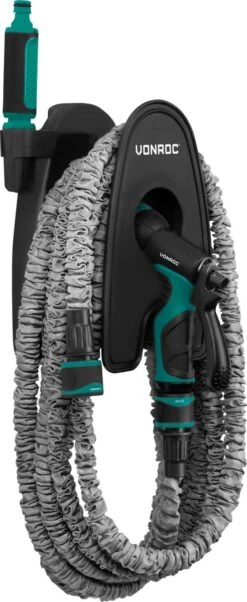VONROC Tuinslang – Uitrekbare Tuinslang 10 Meter – Incl. Aansluitingen, Muursteun En Broespistool